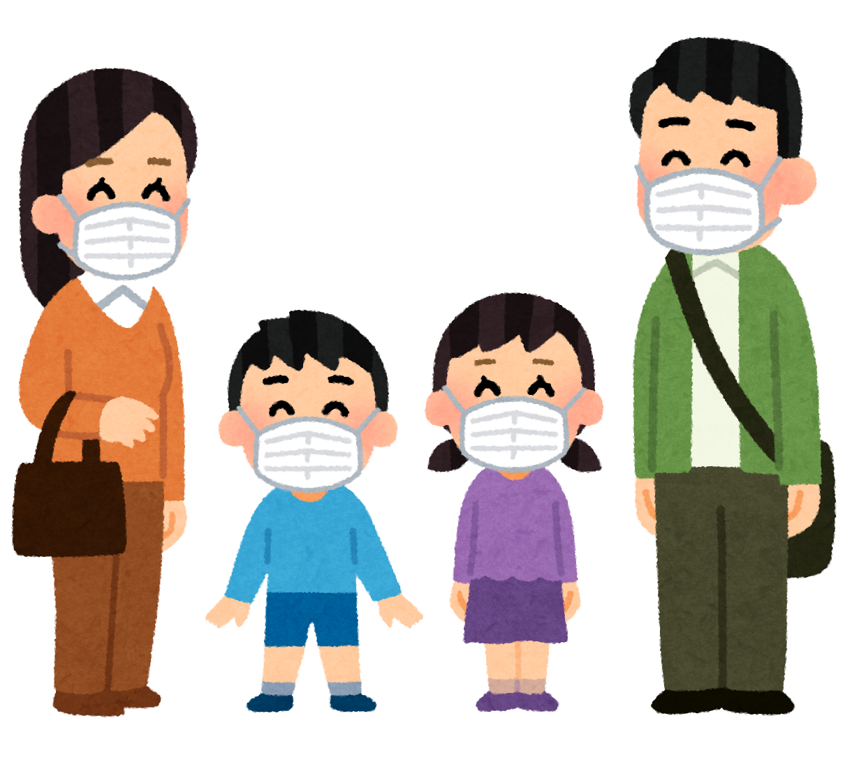 マスクを付けた家族のイラスト 笑顔 かわいいフリー素材集 いらすとや